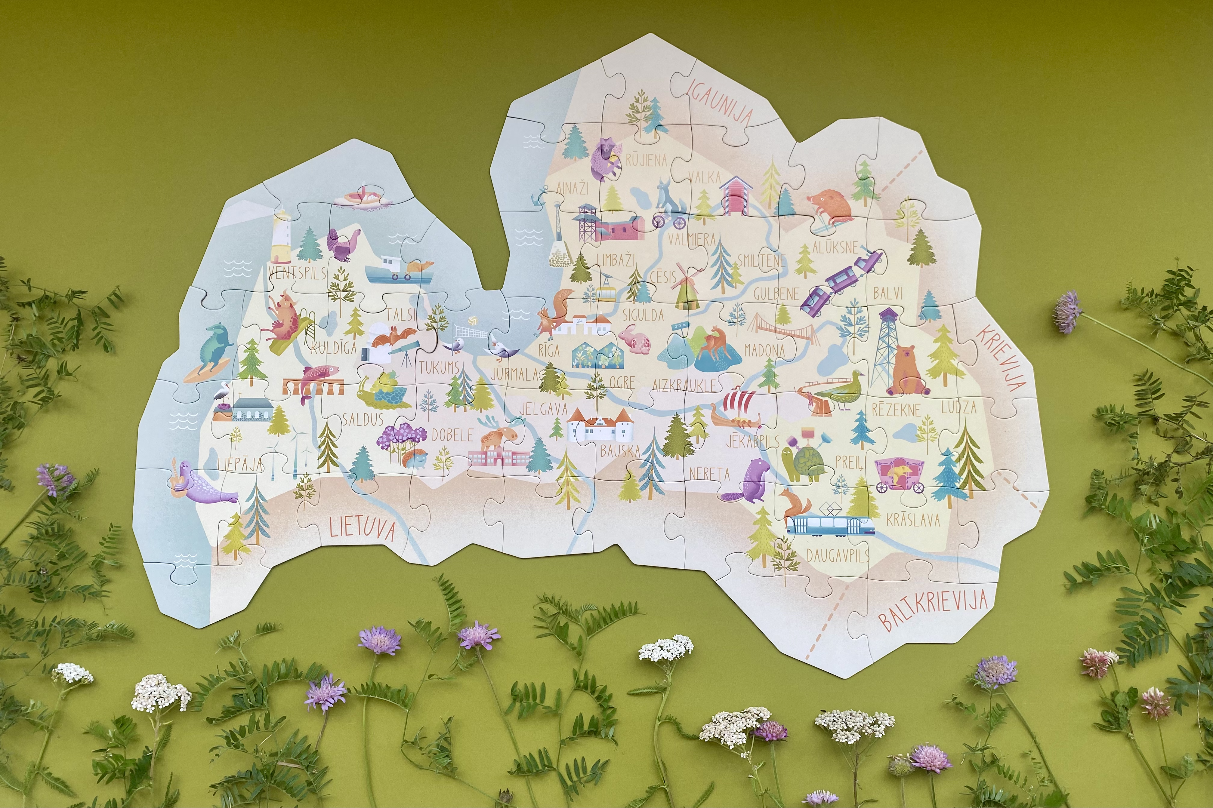 Saliec Latvijas kartes puzli, lai izpētītu nākamo braucienu vai pārgājienu, iepazītu Latvijas novadus, pilsētas un dzīvniekus.