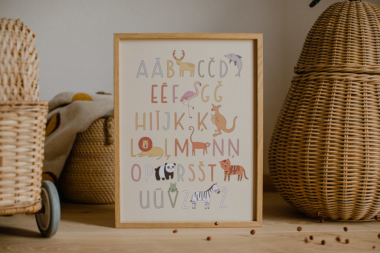 1. Alphabet  poster in English and Latvian A3 and A4 sizes- colored / uncolored