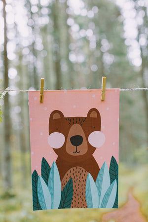 Koši un krāsaini plakāti ar meža zvēriem, kas lieliski iederēsies jebkurā bērna istabā vai klasē.