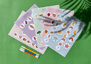 Komplektā 40 krāsainas un melnbaltas darba lapas (kopā 80 lapas)