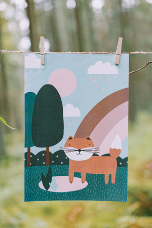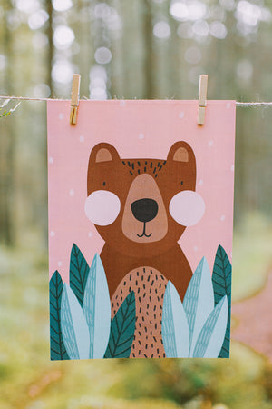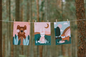 Koši un krāsaini plakāti ar meža zvēriem, kas lieliski iederēsies jebkurā bērna istabā vai klasē.
