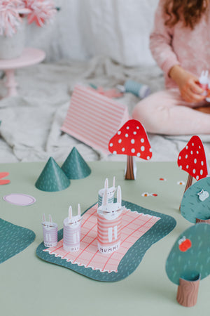 Attīsti radošumu un uzzini vairāk par 3D formām. Vienkārši izveidojams zaķu ciemats (mazākiem bērniem ar nelielu vecāku palīdzību!)